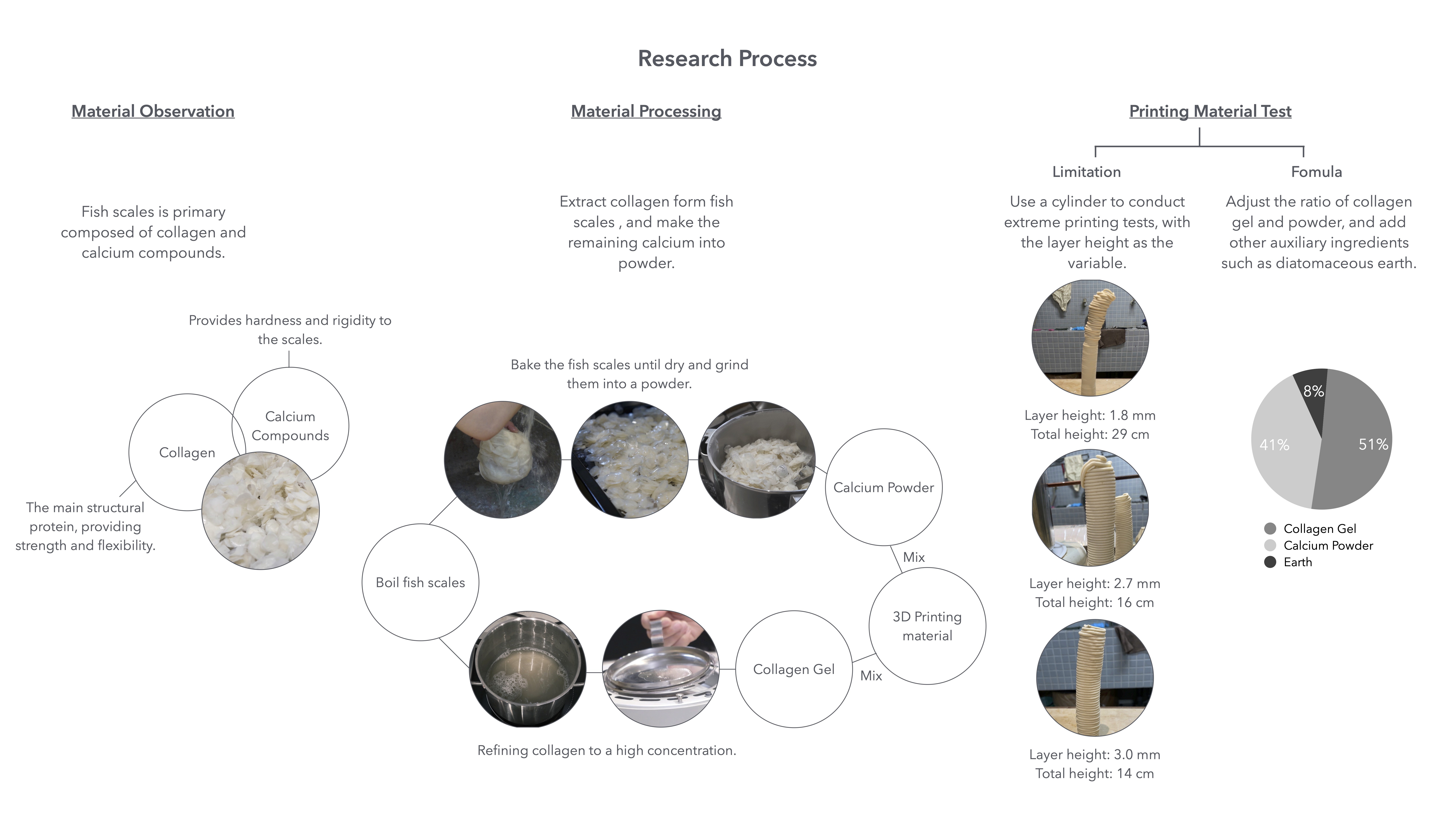 WhaAs an island surrounded by the sea, seafood has long been an essential part of Taiwan’s diet and culture. However, it is estimated that approximately 270,000 tons of fish processing residue are generated annually. While some by-products, such as entrails, are reused as fertilizers, a large portion of fish scales is discarded as waste, causing environmental impact. This project reframes fish scales not as residue, but as a valuable material resource, proposing a circular approach that converts marine waste into printable matter through material research and additive manufacturing.